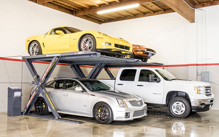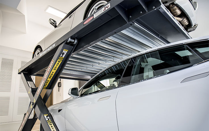 The best thing about Autostacker is that it doesn’t sacrifice ruggedness and capability in exchange for its slimmed-down design. Everything about this lift is industrial-grade. The 6,000-lb. capacity wide-platform galvanized deck offers 80 incredible inches of overhead clearance when the platform is raised to the max lock level, which creates more than enough room for most high-clearance trucks and SUVs. Even low-ceiling garages are able to comfortably accommodate two low-profile vehicles, and spaces with more overhead clearance can accommodate almost anything in the lower level.