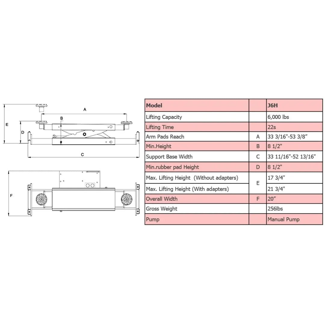 Features AMGO patent floating rolling technology, the low profile design AMGO J6H is equipped with hand ump. With a 6000lbs capacity, its new improved structure enhances the work reliability and ensures convenient operation, making it your ideal jack companion whether on the floor or on a lift.