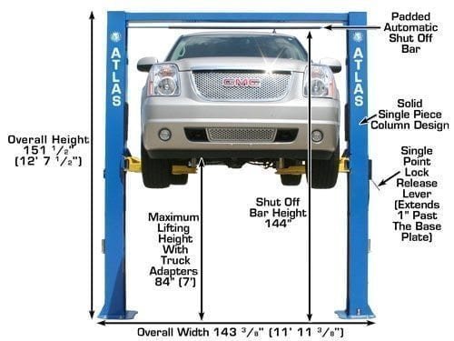 The Atlas OHX10000X also boasts a single-piece 12′ 7″ formed column, a design element that substantially enhances its strength and stability. This solid construction minimizes wobbling and ensures the lift can handle heavier loads without compromising safety. However, it’s important to note that the robust design necessitates a minimum ceiling height of 13 feet for proper installation. This requirement ensures that the lift can perform optimally while maintaining the utmost safety standards. The attention to detail in the design and engineering phases of the Atlas OHX10000X truly sets it apart from other two-post lifts in the market.