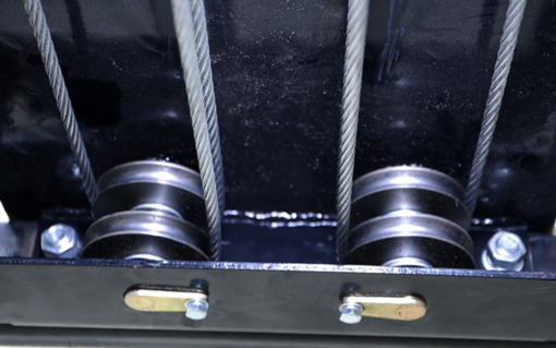 GrandPrix four-post lifts feature four lifting wire ropes made from superior-grade stainless steel. Every wire rope is rated to support 14,000 lbs. The combined wire rope rating is 700% of the lift’s rated capacity, so the chance of overloading a cable under normal circumstances is slim to none.