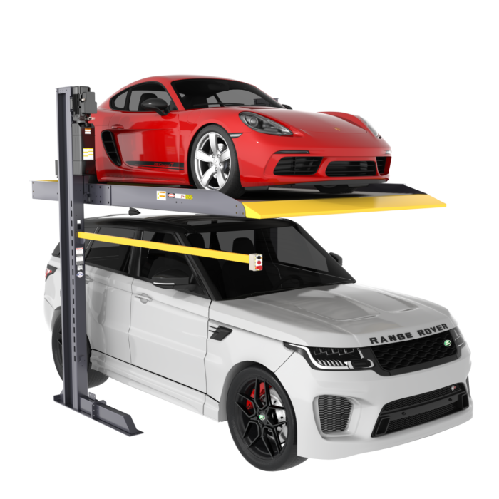The BendPak PL-6000DCX dual-column parking lift has been engineered to handle everything from SUVs and sedans to sports cars. Perfect for both long-term parking on the upper level and short-term parking below, it’s an ideal solution for real estate developers, architects, engineers, automotive dealers, and commercial parking operators. Designed to fit in a standard 8-foot parking space, it accommodates most cars and light trucks, and works seamlessly in both indoor and outdoor locations.