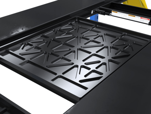 Four mechanical, 3/4″ thick safety locks engage simultaneously as the lift is raised. At all times, locks are securely trapped by the cross tube sleeves, so they don’t become dislodged or disengaged. A redundant backup slack-cable lock ensures instant lock engagement.