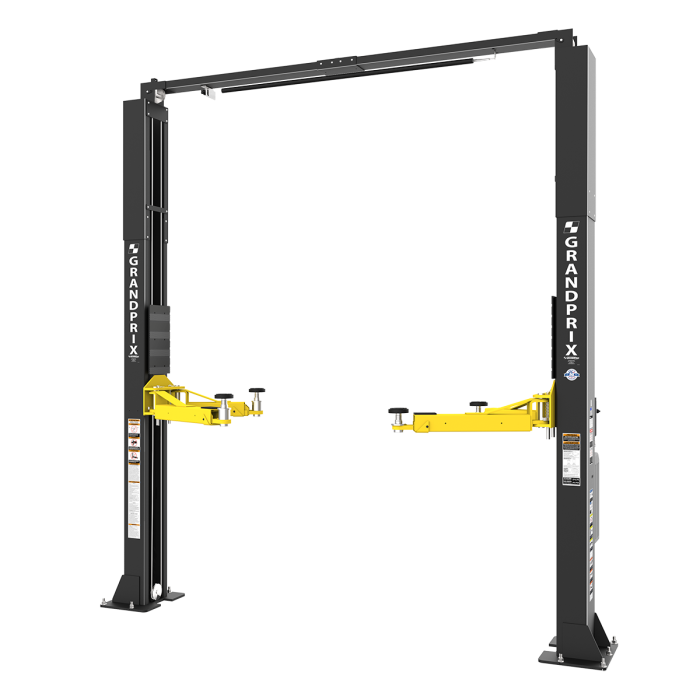 The GrandPrix GP-10C is a 10,000-lb. capacity two-post lift built for serious performance. Designed for both pro shops and home garages, it blends symmetric and asymmetric lifting for ultimate versatility. The clearfloor design gives you full access underneath, while triple-telescoping arms and a stackable adapter set make vehicle positioning fast and frustration-free. With heavy-duty steel construction, a reliable electric-hydraulic power system, and oversized base plates for stability, the GP-10C delivers professional-grade strength and flexibility that lasts.