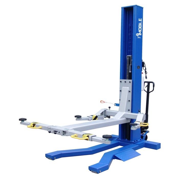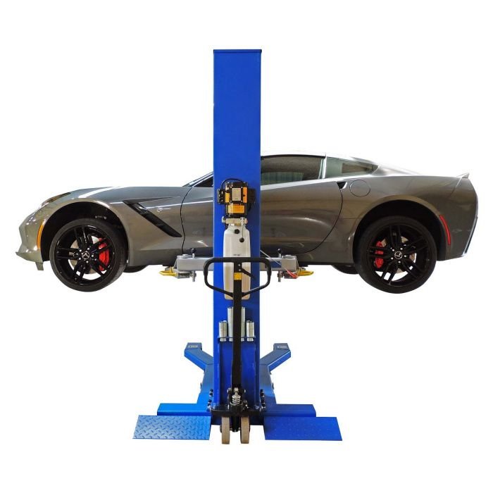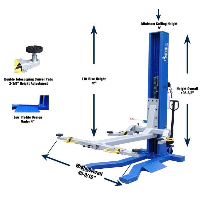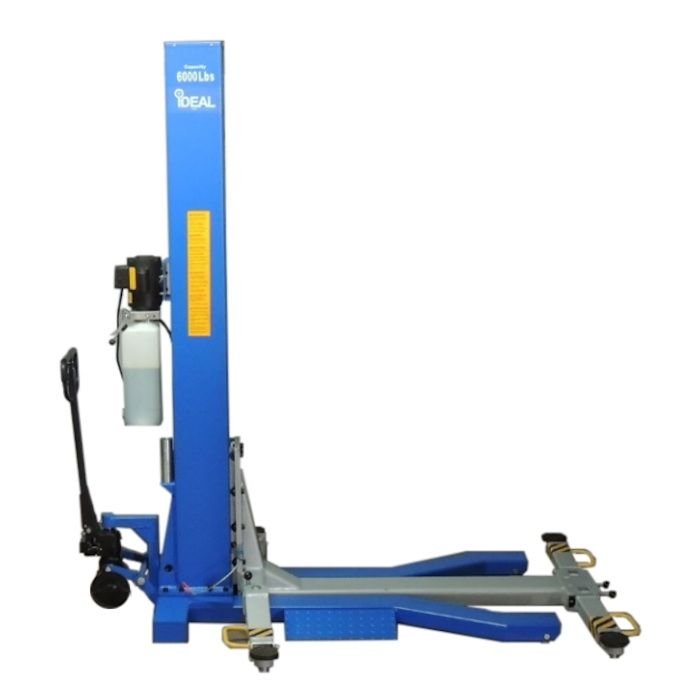The iDEAL iMOBILE MSC-6KLP Mobile Single Column Auto Lift with 6,000 lbs. capacity is a unique solution to an automotive garage problem. When you want a lift to raise the car to a full rise of 69″, yet still be portable, there are few options on the market today. This hoist features an innovative design with a single column and a mobile pallet jack style mobile system to allow you to move it anywhere you need it. Comes in handy for so many situations that you never thought of before.