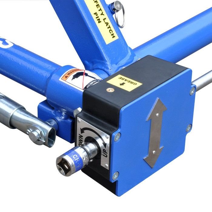 Equipped with twin dual-action precision gear drive mechanisms, the lifting operation is simply powered by the torque supplied from an electric handheld drill. Additionally, the ‘exclusive’ dual independent safety lock bars also allow for full operation from either side of the lift.