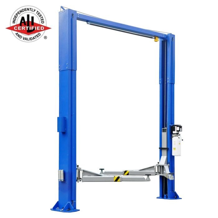 The iDEAL TP12KSC-DX is a heavy-duty two post lift: ample, rugged and reliable. This garage lift’s fully gusseted oversized base plates and big lifting arms with reinforced swivel pin holes promise years of steady service. The D stands for Direct Drive which means a safer, more efficient lift. The TP12KSC-DX boasts a padded override safety shut-off system and its extra long carriage (44″) puts less stress on slider blocks and drop in adapters come standard. You can’t beat this package. Most importantly, this lift has the coveted ALI/ETL certification. When you purchase an ALI certified lift, you can be confident that it meets or exceeds strict minimum standards for safety and quality.