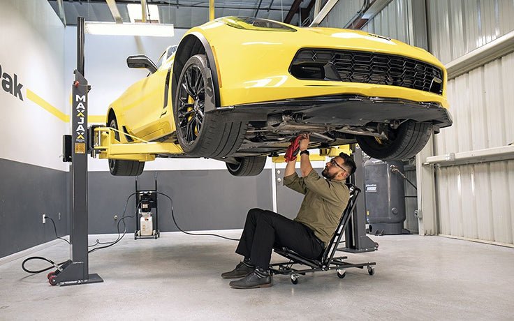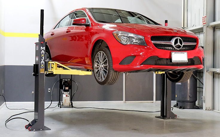 MaxJax M6K is a portable two-post lift with a capacity of 6,000 lbs. It is designed for use in automotive repair and maintenance. The lift has a maximum lift height of 50.5 inches, a minimum lift height of 4.5 inches, and an overall height of 89.5 inches. The compact design of the MaxJax M6K makes it suitable for use in garages with limited floor space. It can be easily moved from one location to another, making it a versatile choice for auto shops and garages. The lift provides a stable and secure platform for performing a wide range of vehicle maintenance and repair tasks.