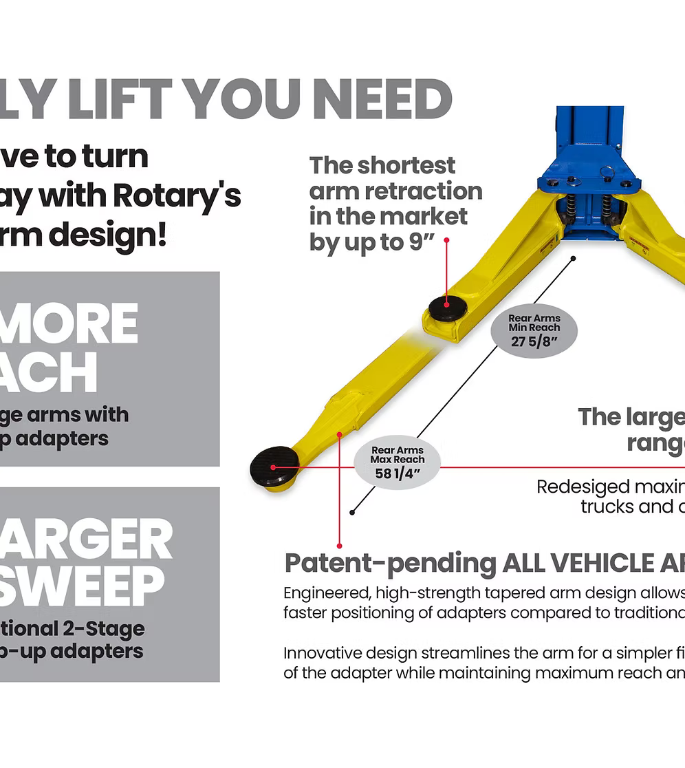 Rotary Lift SPOA10-AV Two-Post Asymmetric Lift with All-Vehicle Lift Arms 10,000 lbs. Capacity