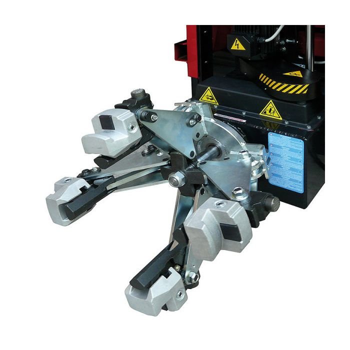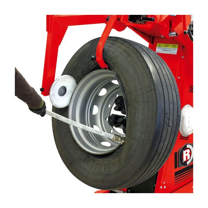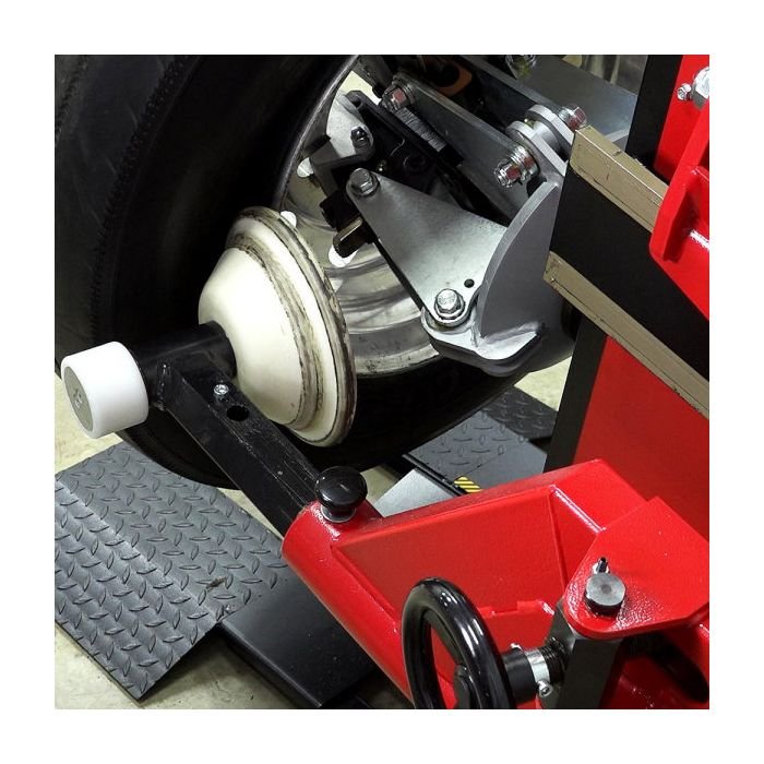 Hydraulic clamping firmly secures the wheel to the tire changer.