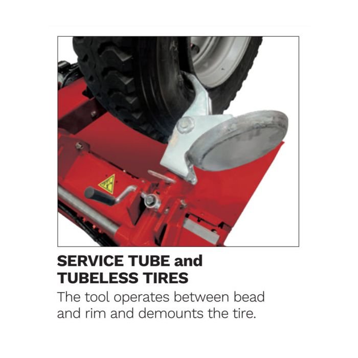 The dimensions and work strokes ensure maximum efficiency for an entire range of tires. The two-speed rotation chucking table can accommodate rims up to 44” and 56” (with VSG108A12 extensions set). Service Tire Diameters Up to 90″.