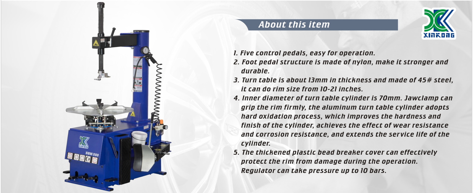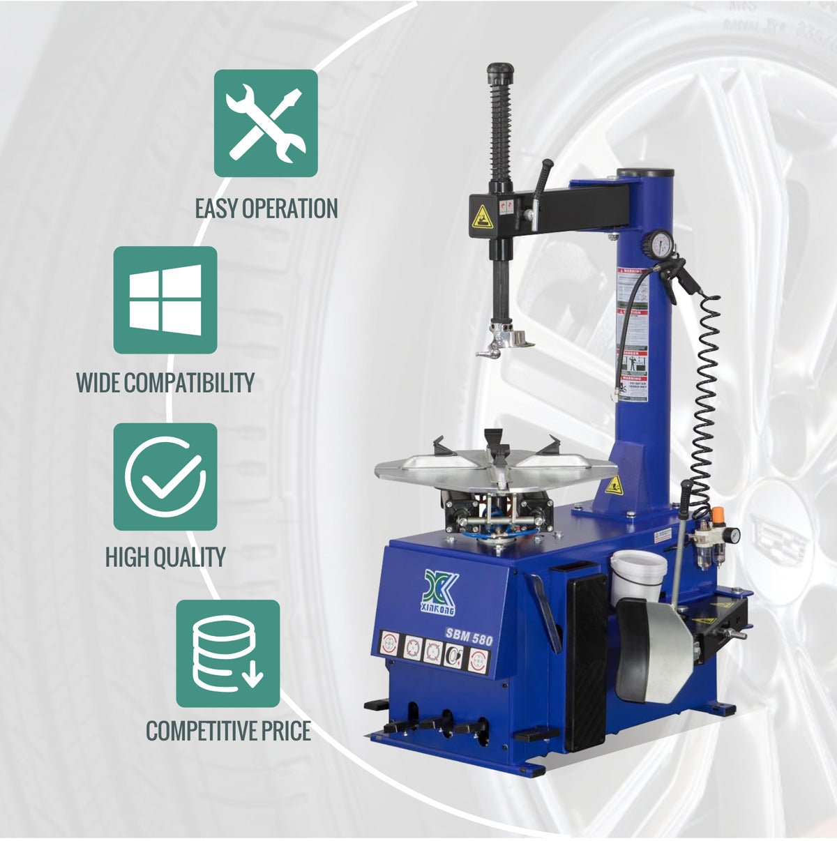 ✔ Bead Break Force: 5600 lbs. (Pneumatic Piston)