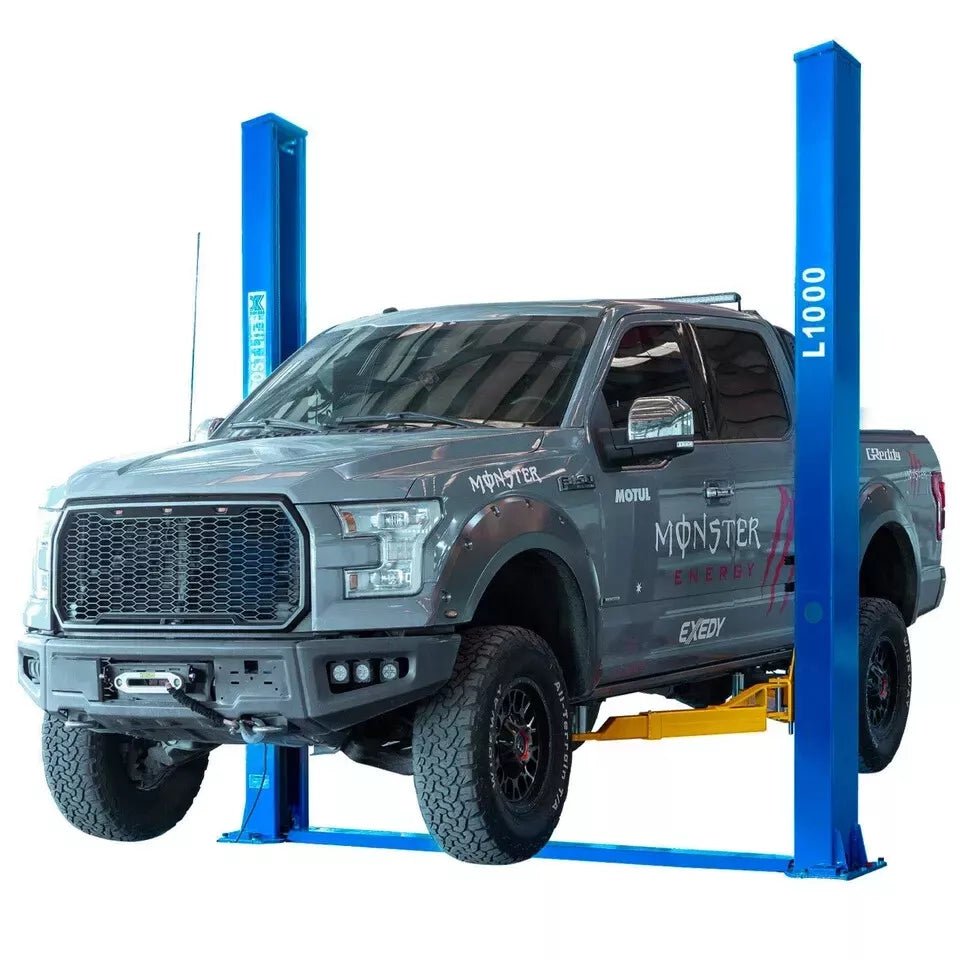 The 10,000 LB Capacity L1000 2 Post Car Lift is a heavy-duty, open-top two-post auto lift designed for lifting cars and trucks, with a maximum capacity of 10,000 pounds.